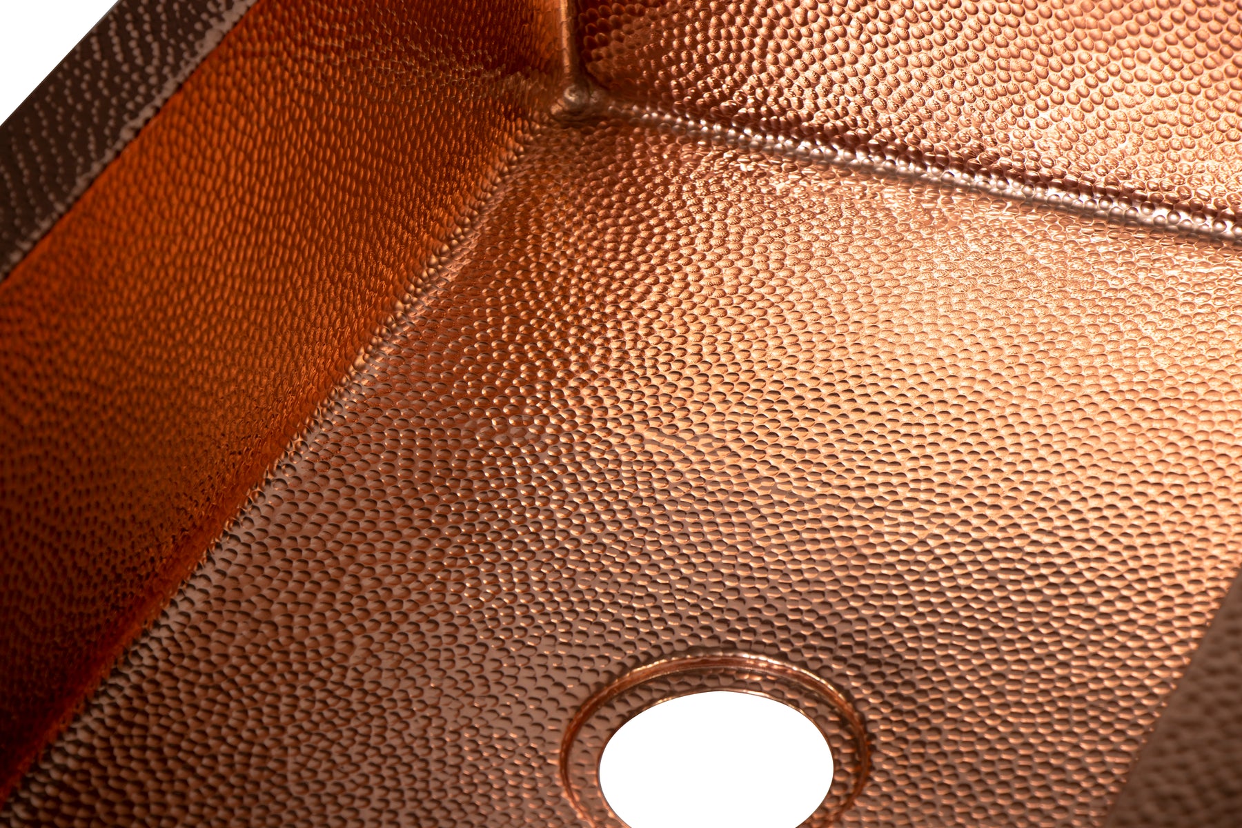 33" Drop-in Single Well Plain Hammered Copper Kitchen Sink